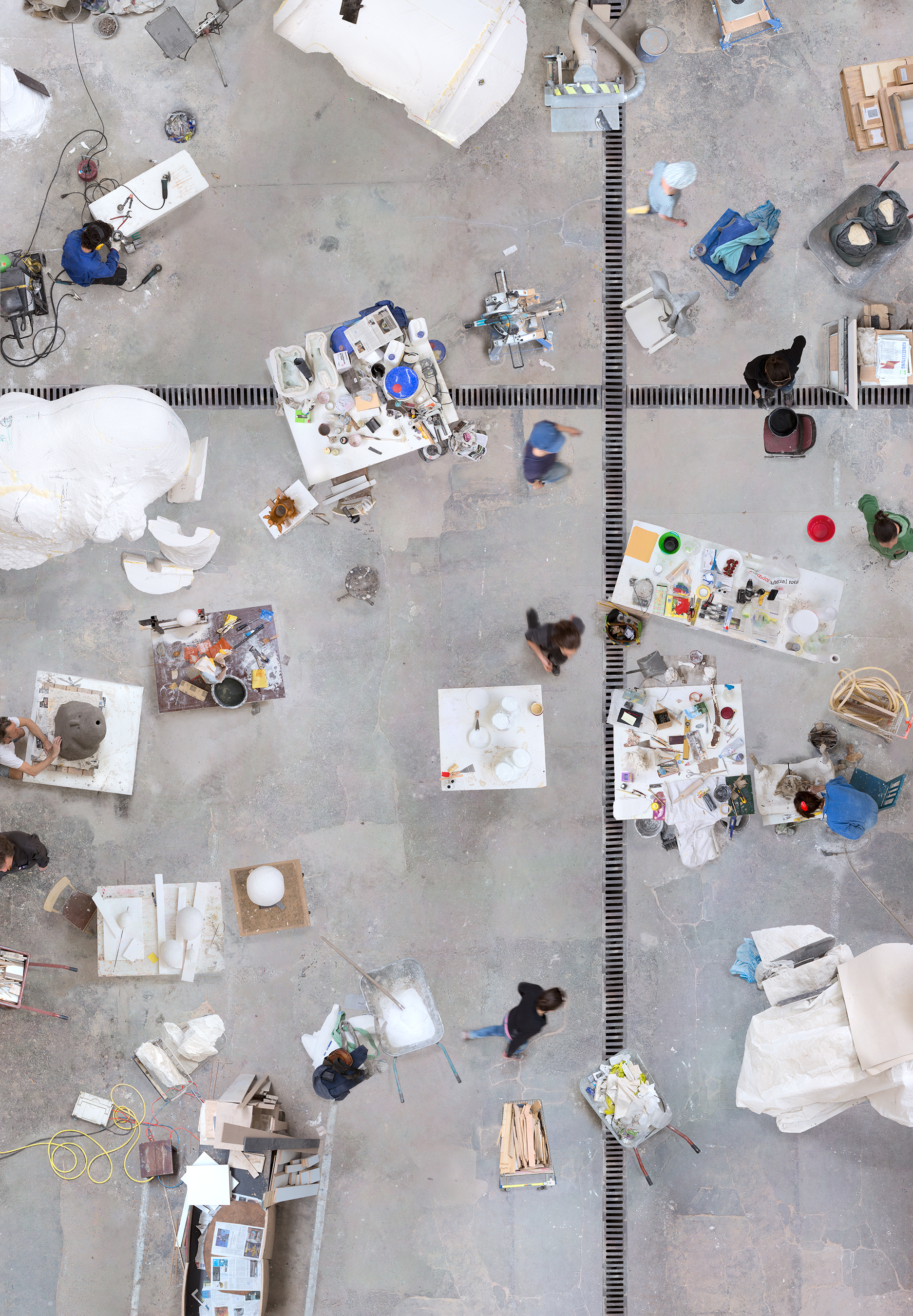 The Bildhauerwerkstatt in Berlin is a place where artists can rent a workshop and create with materialslike metal, wood, stone, ceramics, plaster and plastic. It is situated in a hidden romantic industrial monument next to a little river in the neighbourhood of Wedding. The surface of the Werkstatt is 3600m2 in total with ceilings as high as 12 meters. Because the space is supported by the city, rent is affordable. There are not many open studios like this in Berlin and Bildhauerwerkstatt is very popular and busy. The wellequipped workshops with their cooperative ambiance draw professional artists and amateurs alike and are purely designed to support the process of making. There is no room for presentations or exhibitions.