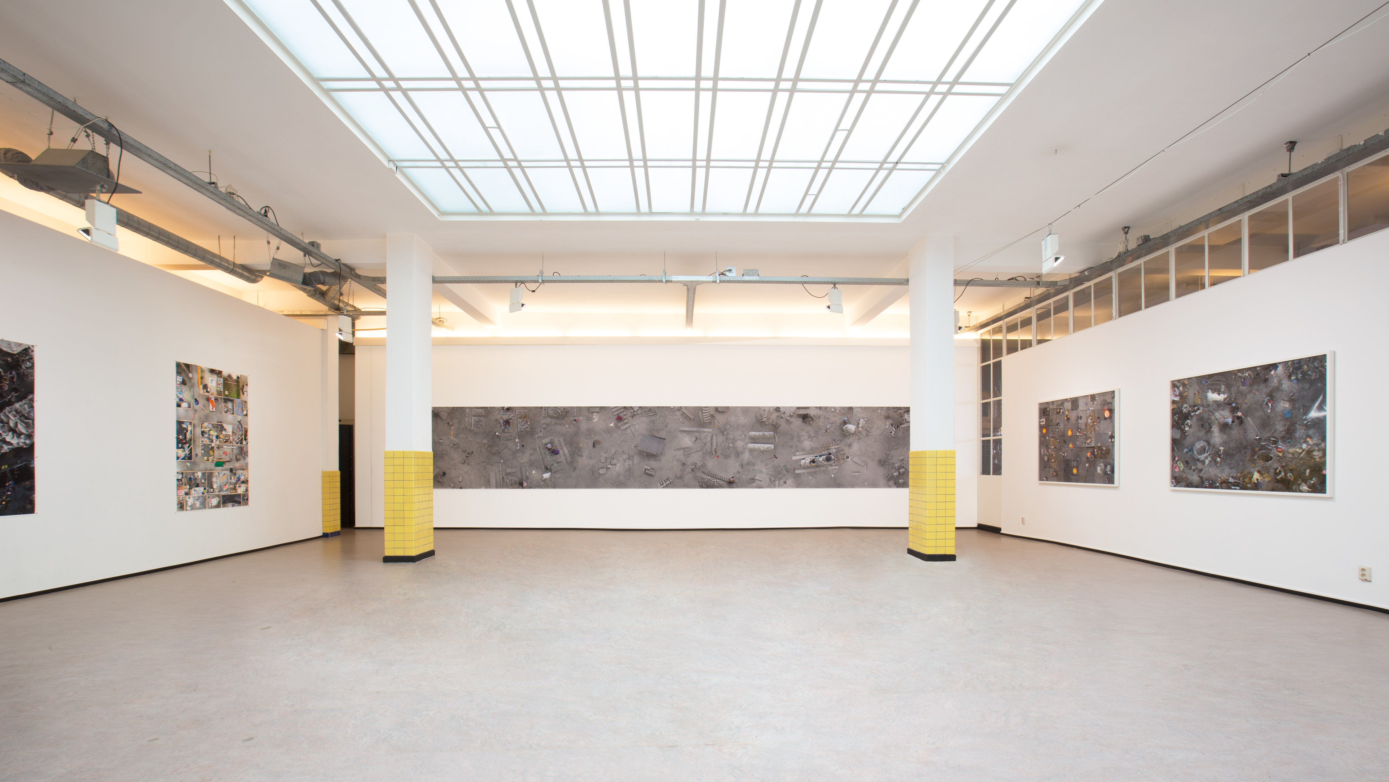 In this picture we see the workspaces of the Fine Art Department at the Gerrit Rietveld Academie in Amsterdam. The studios are located in a huge warehouse. Katrin and Jens were fascinated by the way the space was divided; every student has their own tiny workroom that they can use to experiment and explore. The structure of the space reminded them of the architecture of art fairs. Another notable aspect is the different kinds of materials the students use. These details reveal the bustling creativity of the students and the organised chaos that is so typical of an art school.
