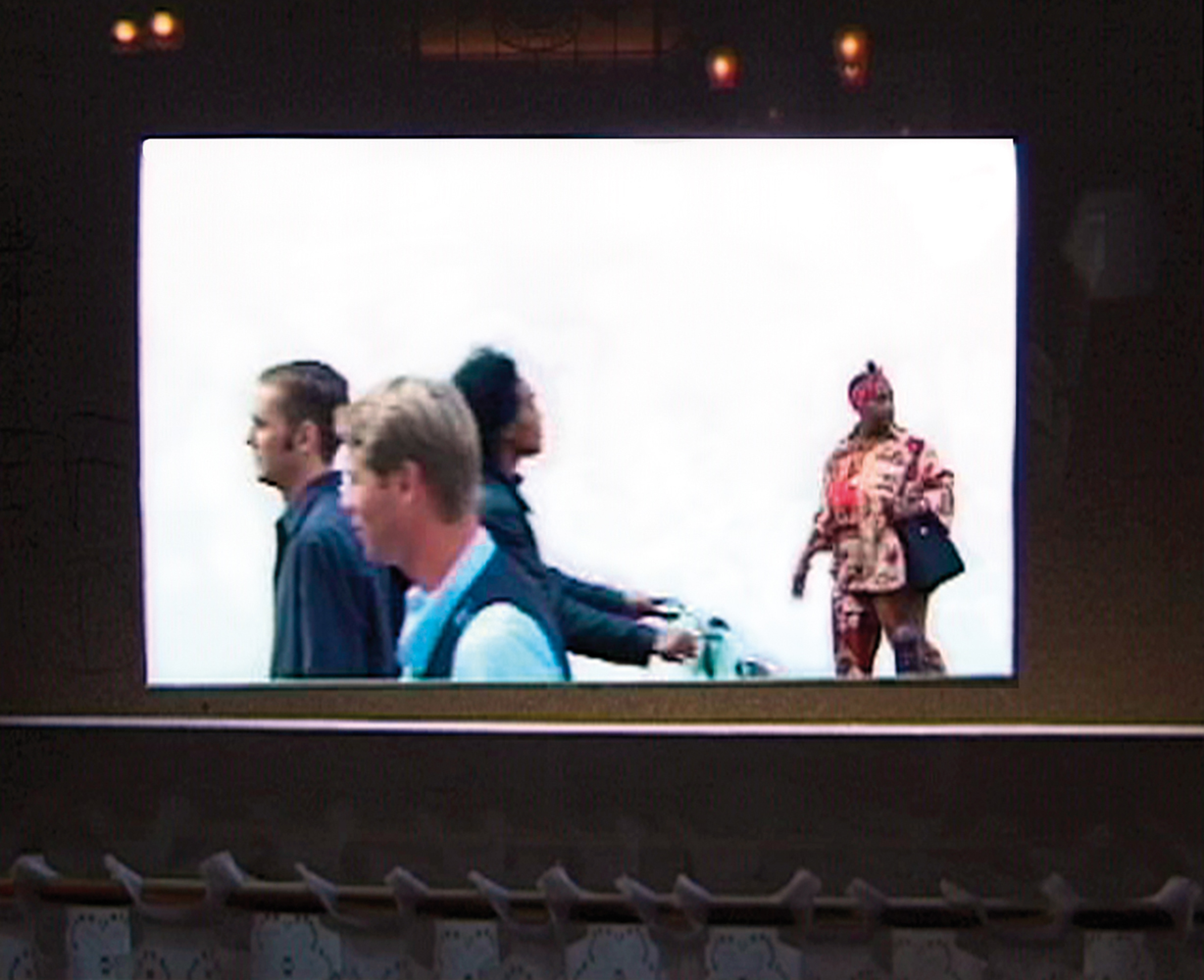 Seen through the frame, the passing public (which at this location consists of a strange combination of tourists, Chinese immigrants, clients of the Red Light district, and sex workers) were perceived and isolated against the neutral background of the white wall, which disavows all specific details of the street, as if these figures were placed in a photo studio. In this peepshow, random passersby appear as fabricated images.